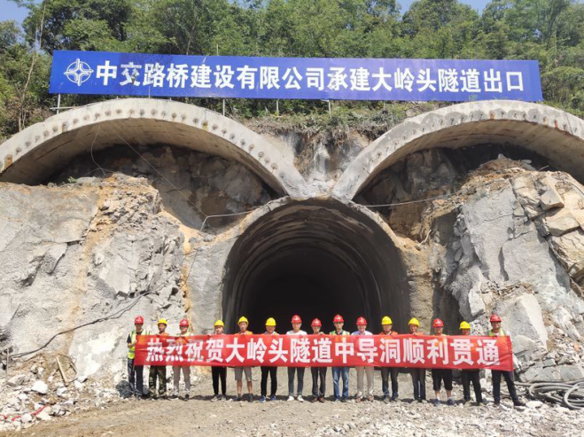 大岭头隧道是03标段的控制性工程,是连接桥面板预制场与秋浦河三座桥梁的通道。本次大岭头隧道中导洞顺利贯通,为实现后期通车任务奠定了坚实的基础。